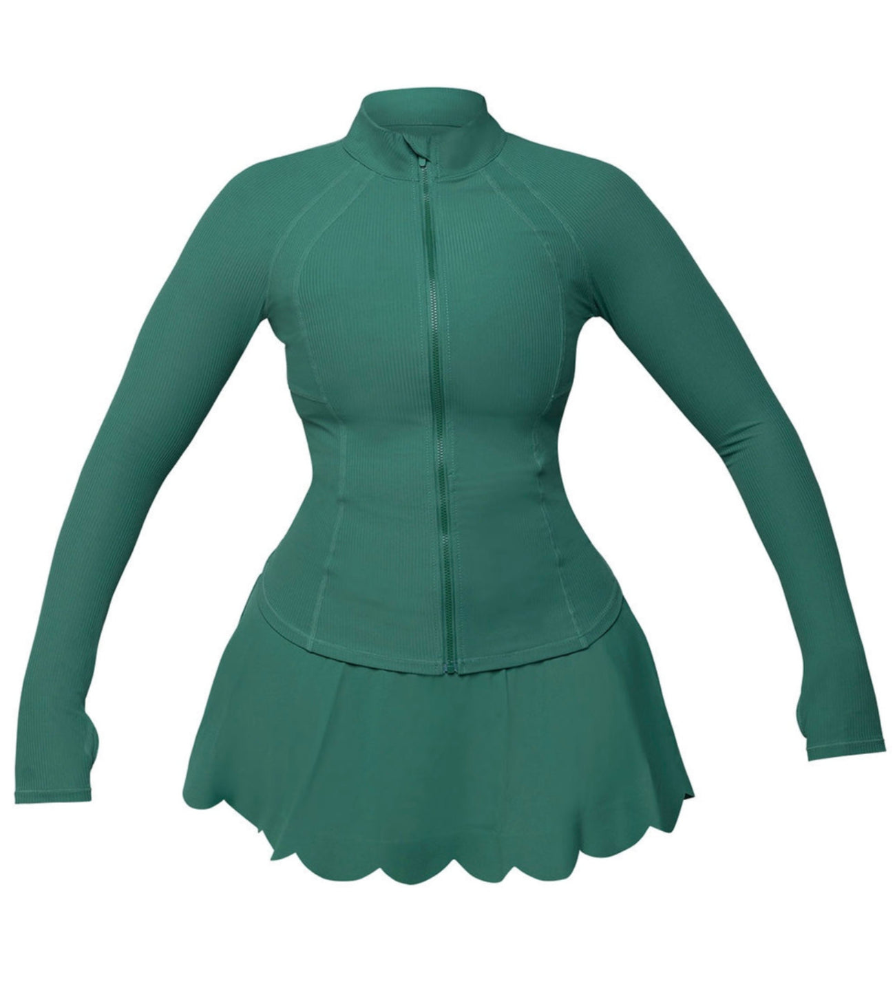 Turn heads and take up space in the Envy Me Set — a flirty, functional, and fly three-piece set that’s giving fitness fairy meets street style it-girl. This versatile set includes a scallop-edged sports bra, matching mini skirt with built-in shorts, and a fitted zip-up jacket to elevate your whole vibe.