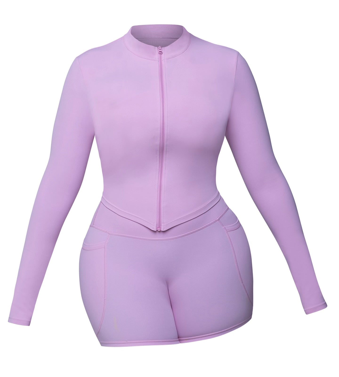 - Sleek fitted zip-up jacket with modern silhouette for layering versatility